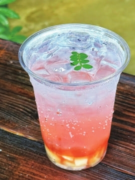 3.杯底放2-3勺蜜桃酱,加冰块至七分满,倒入冷藏气泡水,装饰可选用新鲜桃片、薄荷叶或青柠片。