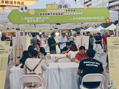 不同于传统招聘会的严肃氛围,本次活动选址人气商圈,利用开放式街区的休闲场景,将企业展位与文创市集、美食摊位交错布局。求职者手握奶茶逛展位、扫码投递简历,企业HR化身“摊主”推介,双方在轻松氛围中完成高效对接。“没想到找工作还能像逛夜市一样自在!”杭州师范大学毕业生小史手持简历穿梭于摊位间,直言这种形式缓解了求职的紧张感。