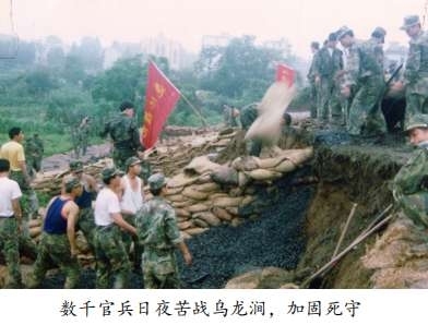 三年后,1999年6月30日,洪水再次汹涌而来,青山水库水位达32.86米,下泄流量为每秒300立方米,余杭水位10.18米。部队官兵在独塘紧急开展防洪工作,齐腰深的洪水中打桩垒包,连续作战,加固堤坝,排除管涌。更扣人心弦的是西险大塘横港段的溃口险情。凌晨三点,一个深不见底的巨大空洞赫然出现,直接威胁着下游17个村庄!姚村的村民在干部的带领下,献出自家所有能堵住洪水的用具,齐心协力共同。面对水下深不见底的洞口,16名余杭男儿深潜入水,一遍遍用麻袋堵塞溃口,他们上来时脸色发紫、浑身颤抖,但没有一人退缩。这场堵漏的殊死搏斗持续了三天三夜,最终在抽水、深挖后找到了隐藏在水底的巨大“病灶”。找准问题所在,军民再次发起总攻,将沙石层层填夯,直至将近一万只麻袋用尽,这场与洪魔的鏖战才最终落下帷幕。