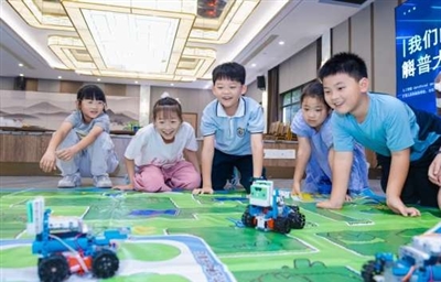 本报讯 (通讯员 苏鑫赋 记者 朱筱) 脑电波操控机器人,机器狗现场蹦迪……这个暑期,一系列科普活动点燃孩子们的科学热情。由区科协、区教育局、区妇联、区关工委共同举办的2025“科普进万家”暑期系列活动正火力全开,把一场场“会动、会响、会思考”的科技盛宴送到孩子们身边。
