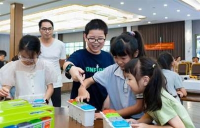 在径山镇,一台“会思考的垃圾桶”令孩子们惊叹不已,它不仅能凭语音识别垃圾种类,还能精准分类,枯燥的环保知识一下子变得有趣起来。实操环节,孩子们动手组装智能垃圾桶,装传感器、连电路、写程序、贴表情、起名字,“环保侠”“分类大王”等纷纷上线。(下转第2版)  (上接第1版)余杭街道的孩子们跟着老师探索菲涅尔透镜的奥秘,了解VR是如何“欺骗”大脑、制造沉浸感的。动手环节,孩子们依次完成镜片安装、焦距调整、画面调试,一副副酷炫的VR眼镜成功“上线”。