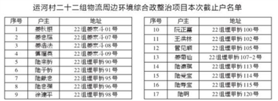 良渚街道运河村22组物流周边环境综合整治项目涉及姜秋根等十七户回迁安置户: