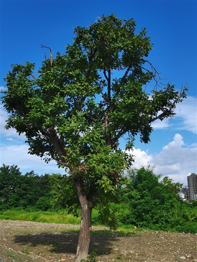 带着疑问,我将大树的照片发给一位友人。得知此树为核桃树,寄寓着健康、长寿、吉祥的美好意义。我顿时觉得有些惊诧,在余杭生活多年,偶尔能在附近见到山核桃树,却从未注意到附近竟有一棵如此茂盛的核桃树。