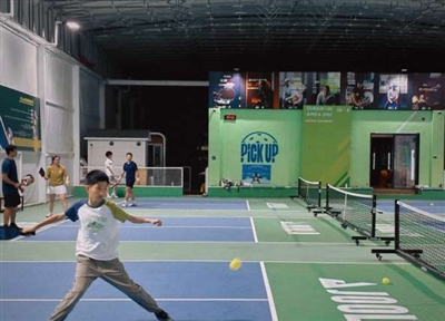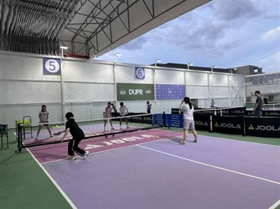 “匹克球很容易上手,拍子和球都比较轻,对于力量要求不高,属于老少皆宜的一项运动。”匹咔球运动馆负责人郑丽平介绍,今年匹克球成了一项网红运动,馆内一共规划了8个球场,工作日晚上一般有六七十人,周末更是人多,从下午3点开始各个场地都是“爆满”状态,还有从苏州、上海过来的亲子团,特意来学习匹克球。