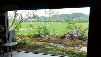 从植觉先生的工作室望出去是最佳观赏点,他打造的苔藓景观以自然的田园风光和连绵的山丘为背景。