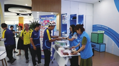 一旁,吃好午餐的外卖骑手们掏出手机,在工作人员的指引下研究领取美食红包券。区总工会工作人员介绍:“除了线下的餐品,大家还能用手机在线上领红包券,可以叠加平台优惠使用。”