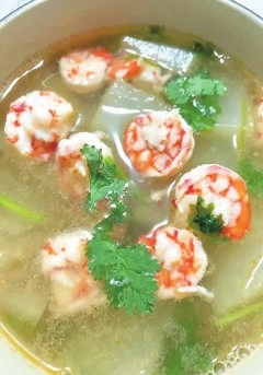 用虾油熬的汤十分鲜甜,加上冬瓜的清爽,很适合热天吃。