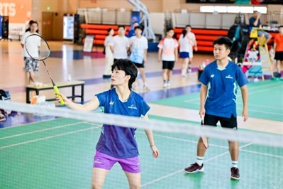 “好球!”8月16日,在“企动五常 ‘羽’见未来”企业羽毛球赛现场,来自阿里巴巴的郦佳瑶一记扣杀后,与对手相视而笑。这场赛事吸引辖区11家企业参加,选手们以球会友、以赛传情。