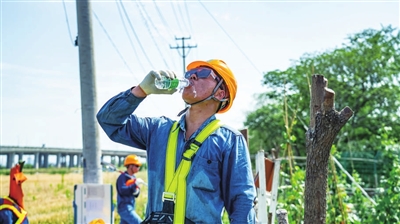 下午三点,历经九小时连续奋战,老旧杆塔拆除、新智能开关安装完毕。从绝缘斗臂车返回地面时,孟凡亮的工服已被汗水浸成深蓝,裸露在外的皮肤泛起灼红。“用电需求大,任务一个接一个,每天杆上作业六七个钟头是常态。”他语气平静,却道出今夏电力人无声的坚守。