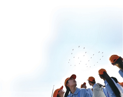 钢铁洪流踏响大地,和平鸽群飞向蓝天。