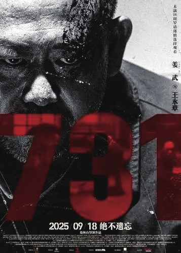 海报的深层叙事远不止于此。细观猩红的“731”数字内部,暗藏炼狱图景:阴森的铁牢暗示着永无天日的囚禁,骇人的针筒诉说着日复一日的抽血折磨,面部被细菌病毒侵蚀的痕迹,直指令人发指的活体细菌实验。这些触目惊心的元素并非艺术虚构,而是历史上3000余名遇难者真实经历的缩影。每一道血色印记,都是遇难者被噤声的悲鸣,是影片对抗遗忘、誓要还原的历史真相。海报通过视觉蒙太奇,将个体承受的非人苦难与宏大的历史悲剧紧密缝合,让无声的画面爆发出穿透时空的呐喊。