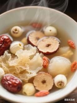 做法:银耳泡发后撕成小朵,百合、莲子提前浸泡;将所有材料放入锅中,加水大火烧开后转小火慢炖,约1小时至银耳胶质溢出,加入冰糖调味即可。