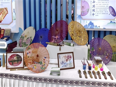 为了此次展示,宋志明专门甄选了近年来创作的精品西湖绸伞、经典西湖美景刷花系列西湖绸伞。“我们不仅带来了很多西湖绸伞精品,还准备了贴青复原工序的体验以及刷花技艺的体验,动静相宜。”宋志明告诉记者。