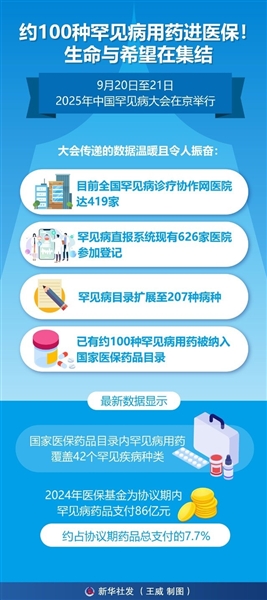 9月20日至21日,2025年中国罕见病大会在京举行。大会传递的数据温暖且令人振奋:目前全国罕见病诊疗协作网医院达419家,罕见病直报系统现有626家医院参加登记,罕见病目录扩展至207种病种,已有约100种罕见病用药被纳入国家医保药品目录。