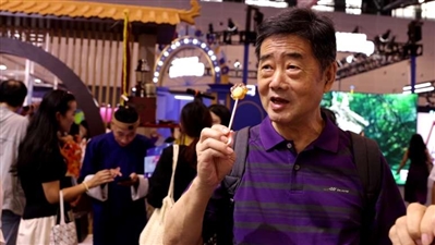 小热昏展位负责人郑磊介绍,这款能唱歌的棒棒糖是这家百年老字号的一次数字化尝试,运用骨传导技术传递音乐,棒棒糖随机内置了两首歌,一首是经典曲目《千年等一回》,另一首是小热昏老底子唱曲演奏。