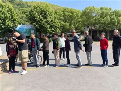 还有一位80多岁的奶奶,腿部骨折,拄着拐杖一步步挪到拍摄点,拿到照片时笑容格外灿烂。