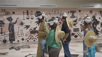 随后,嘉宾们走进“良渚VR大空间?神纹之约”体验区,戴上VR设备,仿佛“穿越”回5000多年前的良渚王国,置身于良渚先民的生活场景。