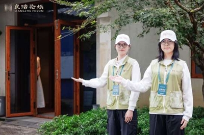 更让她触动的是,大学时在良渚街道党群服务中心看到“小青荷”的事迹展示。“学长学姐们担任引导、提供外语服务,都在为传播良渚文化贡献力量。这让我意识到,我也可以从旁观者变成参与者。”林佳乐说,“我想用外语专长,帮助宾客沉浸式了解良渚文化。这仿佛是接过了父亲手中的接力棒——他建设了展示良渚的物理空间,而我要让这个空间里的文化故事‘活’起来、‘流动’出去。”