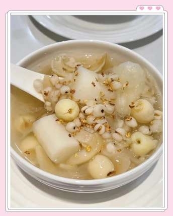 银耳富含植物胶质,促进皮肤保湿;莲子和百合清心润肺,可改善面部泛黄;山药健脾益气,增强营养吸收;白茯苓利水渗湿,辅助排毒。将这些食材浸泡后慢炖1—2小时,煮至粘稠即可,可加少量冰糖调味,每周饮用2—3次。