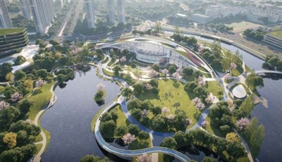云眼位于访云街北侧、泊志路西侧,与云门公园其他景观和功能场所通过慢行系统连接成环,共同构建这片都市绿洲。其建筑设计汲取良渚文化元素,造型灵动活泼,兼具科技创新感与实用功能,与云门公园景观、水系有机融合,通过慢行游步道可通达公园各景点。目前正在加紧施工建设,预计2028年建成投用。