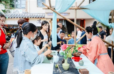 “点茶不是表演,是千年文脉的活态传承。”在“宴茶·径山筑”茶生活美学空间,“茶仙子”周颖的演示,将游客带入宋人的风雅生活。这场穿越时空的茶宴,高峰时一天接待200多名顾客,年接待量超20000人次。