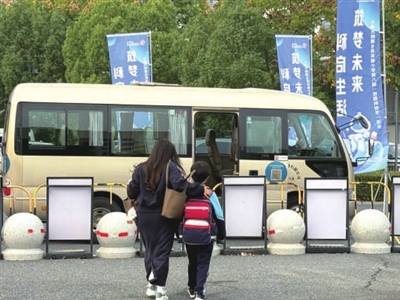 本报讯 (记者 王媛媛 通讯员 沈宇皓) 昨日下午4时20分,仓前小学校门口,三年级学生王鑫艺冲出校门,攥着书包跑到举着手举牌的志愿者身边。“妈妈,我看到巴士了,你到社区会客厅等我。”王鑫艺对着电话手表报完平安,脸上满是雀跃。
