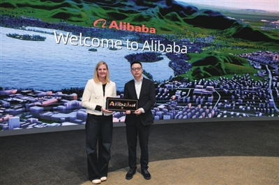 阿里巴巴集团CEO吴泳铭接待了考文垂一行,双方就奥运会数字化转型做了交流,并互赠礼物。