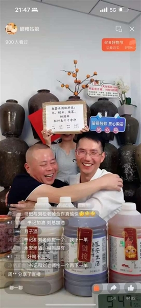 “6·18”卖出5万元,7月达到了7万元,9月两人一场直播下来销售额更是做到了12万元。刘松和张水宝用接地气的交流方式,和直播间的观众处成了朋友,对于观众“书记和刘老师抱一个,我下一单”的要求,两人也是照单全收。