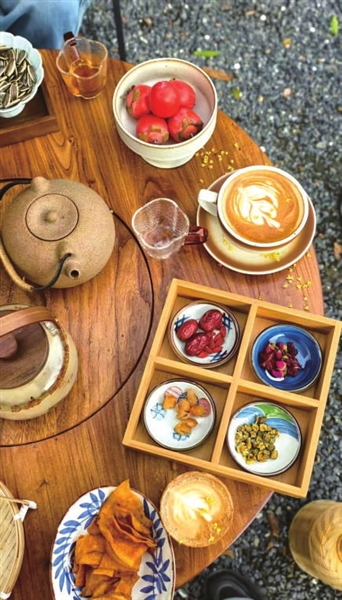 院子旁的白房子里,她的“桂花创意”不断:用冰淇淋饼皮做杯,倒入丈夫煮的热咖啡,淋上自制桂花蜜,杯口缀一圈桂花,一杯可食用的“甜蜜蜜”咖啡就此完成。“有了桂花蜜后,咖啡苦中带甜,杯口的桂花也能吃。”赵子丹笑着说,“我叫它‘甜蜜蜜’,希望每个人的生活都甜甜蜜蜜。”