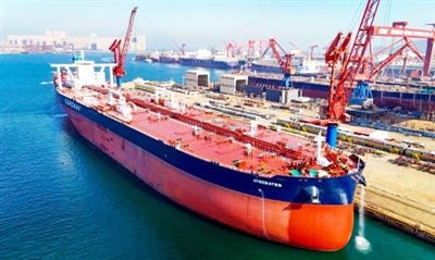 11月10日,中船北海造船在山东青岛西海岸新区向比利时船东交付31.9万吨氨预留超大型原油船。