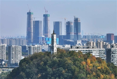 登上宝塔山远眺,最瞩目的建筑当属未来新地标——“金手指”综合体项目,四幢大楼正以挺拔之姿刷新着余杭天际线的新高度。