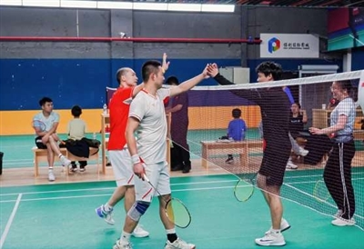 夜幕降临,径山镇文体中心的灯光亮起,羽毛球挥拍和击打的声音清脆,还不时传出喝彩的声音。
