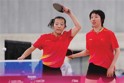 此次比赛中,孙博瑶与“老搭档”史册配合默契,成功摘得乒乓球女子双打金牌。二人还与队友王哲、王钰童在关键时刻顶住压力,以全胜战绩夺得女子团体金牌。