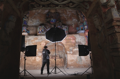 第二个难点是色彩还原。敦煌壁画历经千年,颜料褪色严重。“太阳的位置在变,色温和亮度也在变,所以很多露天的石窟寺,我们都是晚上去采集,完全用人工灯光,这样才能保证数据的一致性。”刁常宇介绍。