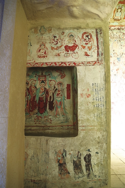 有静有动、文武并俱的塑像,向观众展示着唐代雕塑艺术的形神兼备。不光是塑像,还算明亮的光线、高清的打印稿,让南壁的观音经变图清晰可见。