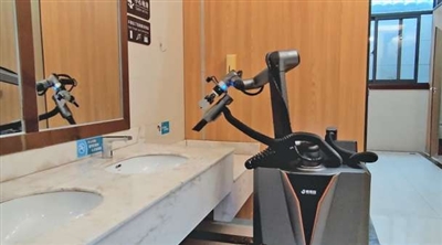“以前这个点,我得抓紧拖地、擦洗,赶在早高峰前把里外收拾一遍。”吴师傅一边说着,一边掏出手机,点开软件。记者顺着他手指的方向看去,一台灰黑色的智能清洁机器人灵巧地绕开立柱和垃圾桶,停在洗手台前,随即,喷水、刷洗、吸污、吹干……一连串动作一气呵成,就连器皿底部与墙角的缝隙都打扫得一干二净。“你看,现在我能和它‘兵分两路’。”吴师傅笑着对记者说,“它去清洗小便器和坑位时,我就能同步擦拭台面。这减少了我们保洁员的工作量,也提升了工作效率。”