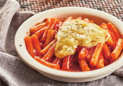 做法:年糕条放入沸水中煮5分钟,捞出沥干;碗中放1勺韩式辣酱、半勺生抽、少许牛奶,搅拌成酱汁,倒入年糕中拌匀;把年糕铺在烤碗里,表面撒满马苏里拉芝士,放入预热好的烤箱,上下火180℃烤10-12分钟,直到芝士融化、表面金黄。