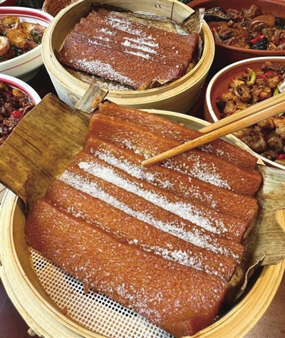 做法:年糕切成2—3厘米厚的方块,放入蒸锅;水开后中火蒸15—20分钟,直到年糕完全变软、用筷子能轻松戳透;取出后淋上一勺桂花蜜或红糖酱,趁热吃口感最佳,糯米的香甜混着花香,温暖又治愈。