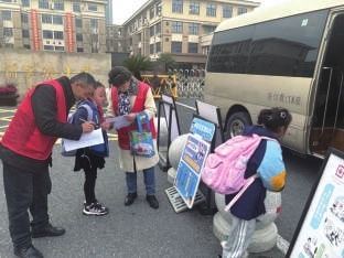 图③:仓前街道向往社区“向往微巴士”接送学生放学