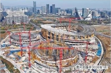 2023年10月,余杭国际体育中心建设全面开启。目前,足球场标段主体结构和两馆标段主体结构基本完成,钢结构屋面完成,完成总工程量的45%。