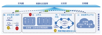 “端云协同算网底座”解决的就是这个矛盾。所谓“端”,指的是家庭里的各种终端设备:机顶盒、摄像头、云电脑的小盒子。而“云”,则是指中国移动在全国部署的200多个分布式业务节点,构成强大的云计算能力。