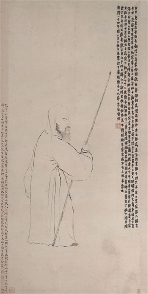 “只寄得相思一点”是张炎的词句,用以倾诉漂泊孤愁与相思之苦。乾隆二十三年,“西泠八家”之一、64岁的丁敬为72岁的金农刻了这方印,以表达对老友的思念;第二年,金农在扬州画了一幅自画像远寄在杭州的丁敬。