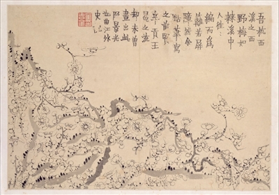 金农53岁时才开始工画,其画造型奇古,善用淡墨干笔作花卉小品,尤工画梅。