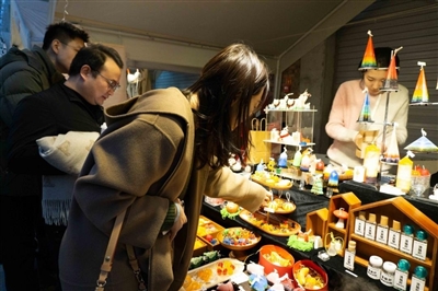 如果说治愈系市集是都市人的“解压阀”,那么搬进博物馆的市集则让人们在历史与现代的碰撞中触摸可感可知的文化魅力。作为北京首次推出的“博物馆里跨年夜”活动,首都博物馆“时光市集”为游客打造了一场“文化+消费+体验”的盛宴。