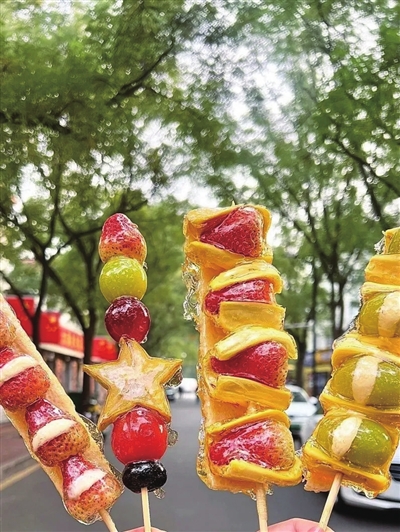 酸酸甜甜的山楂、草莓、葡萄,搭配奶香浓郁的奶皮子、晶莹酥脆的糖衣,组合了这款零食界的新“顶流”。不少人为了这一口,甘愿排队几个小时。