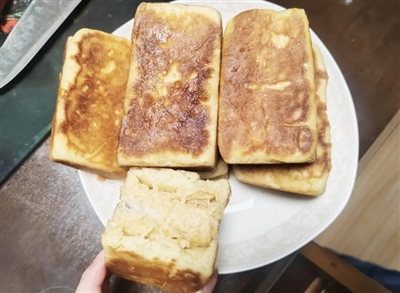 做法:将黄油以外的材料搅拌,揉成团后加入黄油,醒发1小时;排气后分6份,放置松弛10分钟;面皮擀成中间厚、周围薄的圆形,放入切成长方形的奶皮子,折叠包裹,醒发松弛20—30分钟;锅中加入黄油,将奶皮饼烤至金黄酥脆即可。