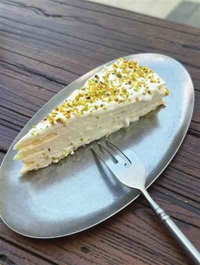 做法:将半干奶皮子切成片状,确保柔软易折叠;均匀涂抹一层酸奶油或生奶油,撒上适量糖粉调味;铺上炒米、果酱或水果片,根据喜好调整甜度;重复涂抹和夹心步骤,叠加10-15层,可冷藏回温后食用,口感更佳。