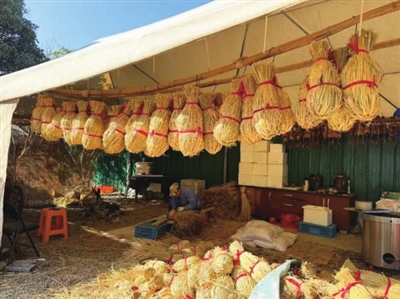 用稻草包裹后的线鸡,带着一种特殊的清香,鲜嫩不柴,而且自带咸鲜,上桌时不需要任何的调味料。