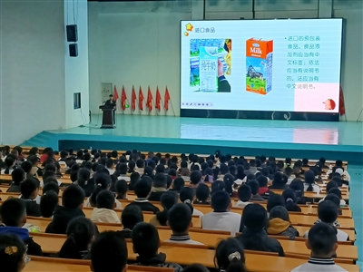“同学们,你们平时购买食品时是否有检查食品的外包装有没有标注生产厂家名称、地址合格证?食品是在保质期内吗?”在宣讲现场,祥芝镇市场监督管理所工作人员通过寓教于乐的方式,向石狮市素质教育基地的师生们科普如何辨别伪劣食品、如何读懂食品标签、如何预防食物中毒,引导和劝诫学生们远离垃圾食品,不购买“三无”食品。