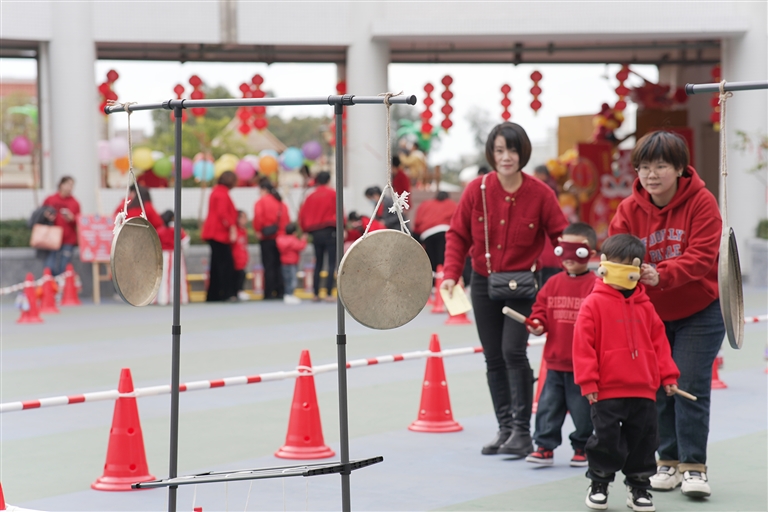 据董雅诗园长介绍,今年首次举办以“逛庙会”为主题的元旦活动,孩子们可以通过庙会来了解闽南的民间风味美食、手工、游戏等,感受年的味道。美食是庙会的灵魂,孩子们既能吃自助餐迎新,也可以自己动手包饺子、剪窗花,还能在装扮年味十足的“年货大街”上品尝冰糖葫芦、棉花糖、爆米花、糖画等特色小吃。在游庙会的同时,孩子们还能参加投壶、敲锣等小游戏。最后,家长们还可以带着小朋友在画卷上写下对新年的美好祝福与期盼。很多家长对活动表示肯定,认为孩子们在充分感受新年喜庆洋溢的气氛的同时,也能传承和发扬中华优秀传统文化。